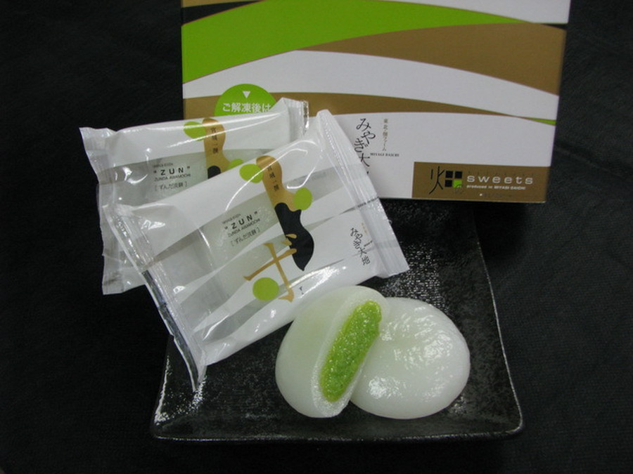 宮城を代表する伝統食のずんだをぷるんとした柔らかいお餅に優しく包みました。
