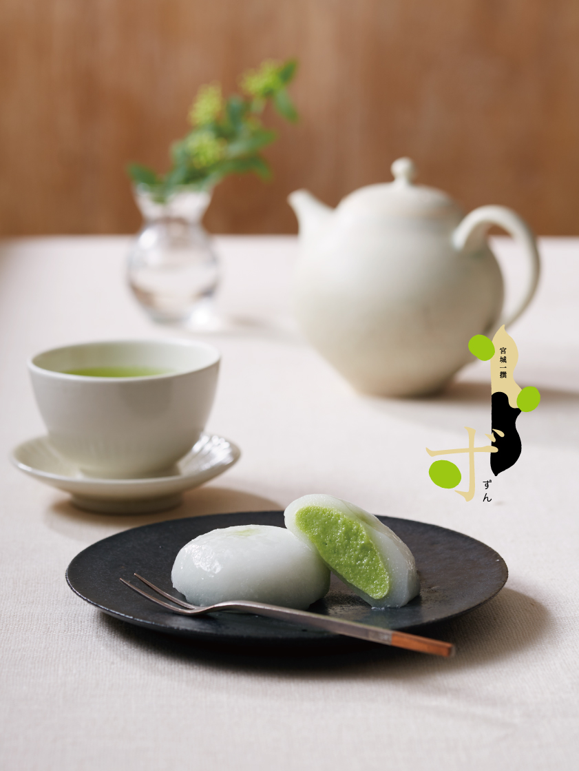 宮城を代表する伝統食のずんだをぷるんとした柔らかいお餅に優しく包みました。
